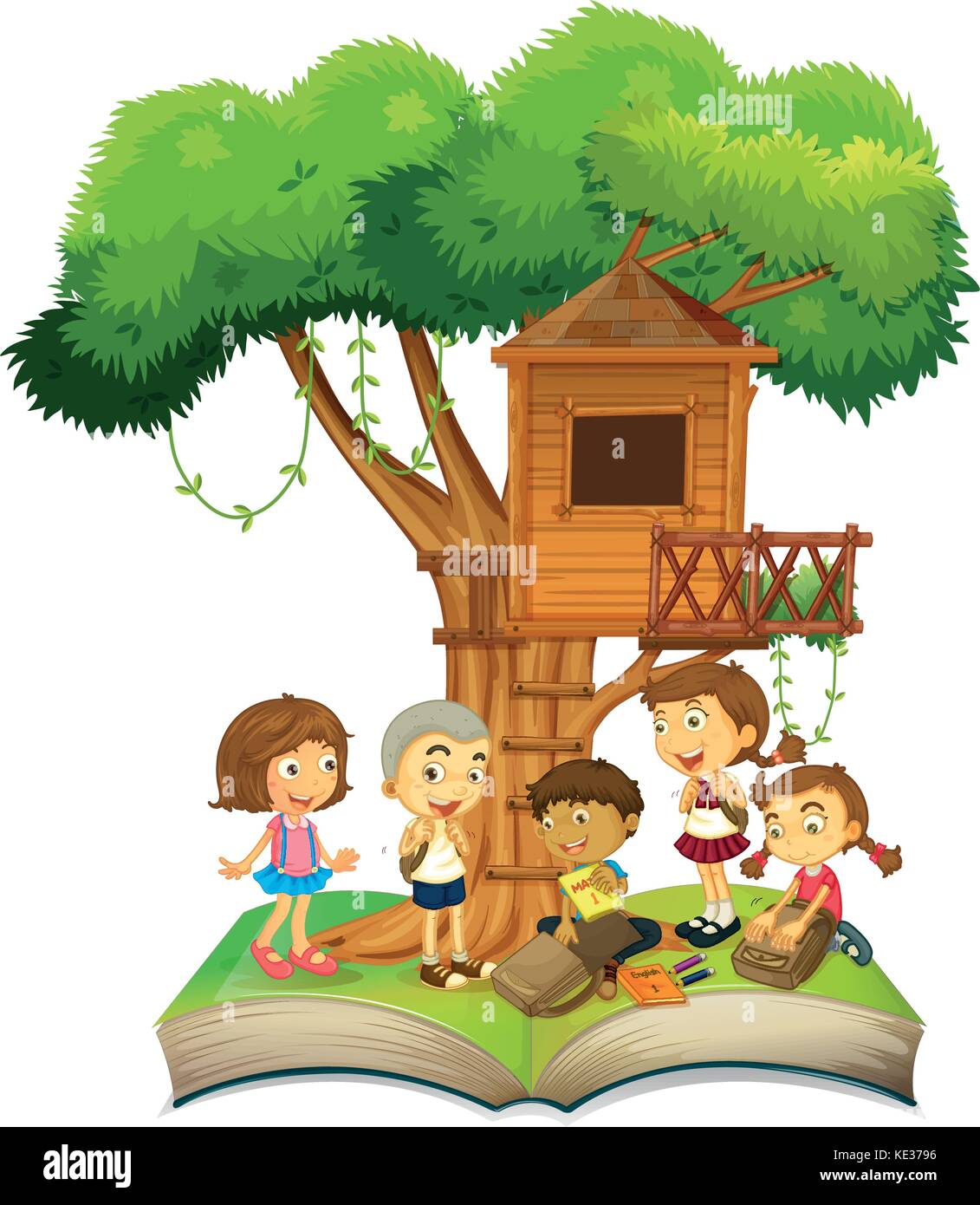 Book Of Children And Treehouse Illustration Stock Vector Art