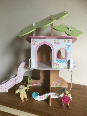 Elc Wooden Rosebud Village Dolls House Tree House Playset With 2