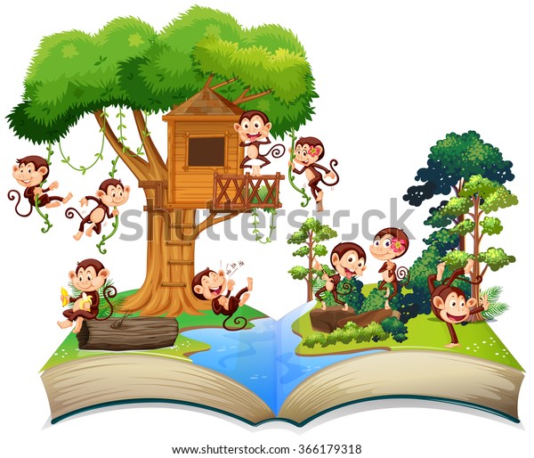 Monkeys Playing Treehouse Illustration Stock Vector Royalty Free