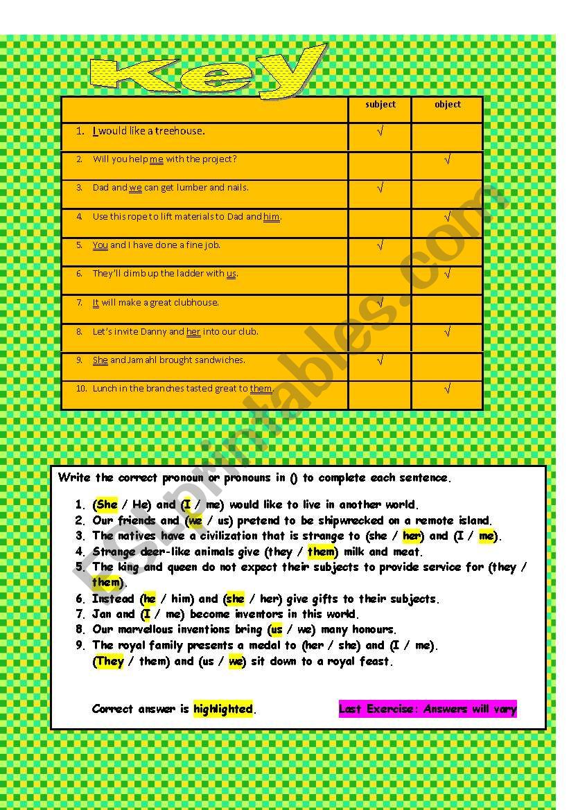 Subject And Object Pronouns Esl Worksheet By Tech Teacher